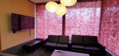 控室と隣接した式場は、和モダンをイメージした造りになっており優しさの中にも、また違う一面の荘厳な雰囲気を漂わせます。